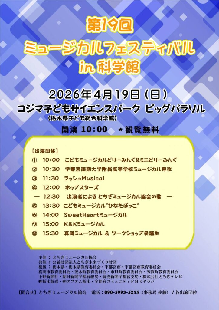 問い合わせ(Contact) Email : tochigimusical@gmail.com