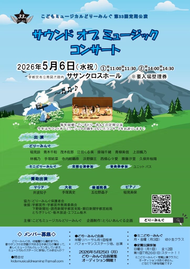 5月6日 サザンクロスホール こどもミュージカルどりーみんぐ第33回定期公演 6月7日 真岡ミュージカル定期公演 6月28日 Sweet Heart ミュージカル定演 7月5日 K&Kミュージカル定期公演