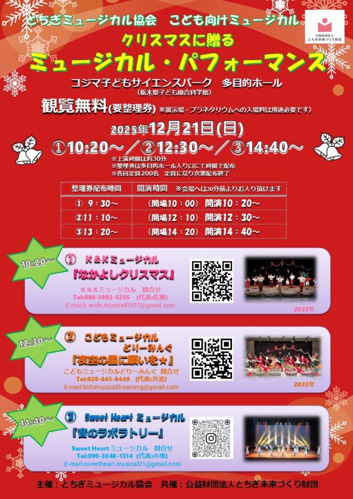 12月23日(土)K&KミュージカルとSweetHeartミュージカル 「わくわくクリスマス」