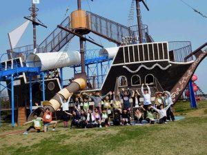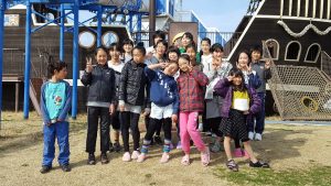 アスレチックで遊ぶ子供たちの笑顔は寒さに負けません