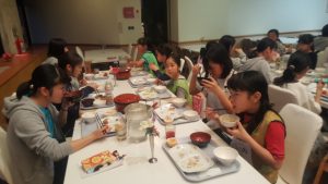 夕食後は、グループに別れて創作寸劇コントの制作。明日は、全部の発表会です。フェスティバルが楽しみになってきました。
